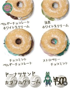 食事系もスイ-ツ系もおいしいド-ナツサンド。